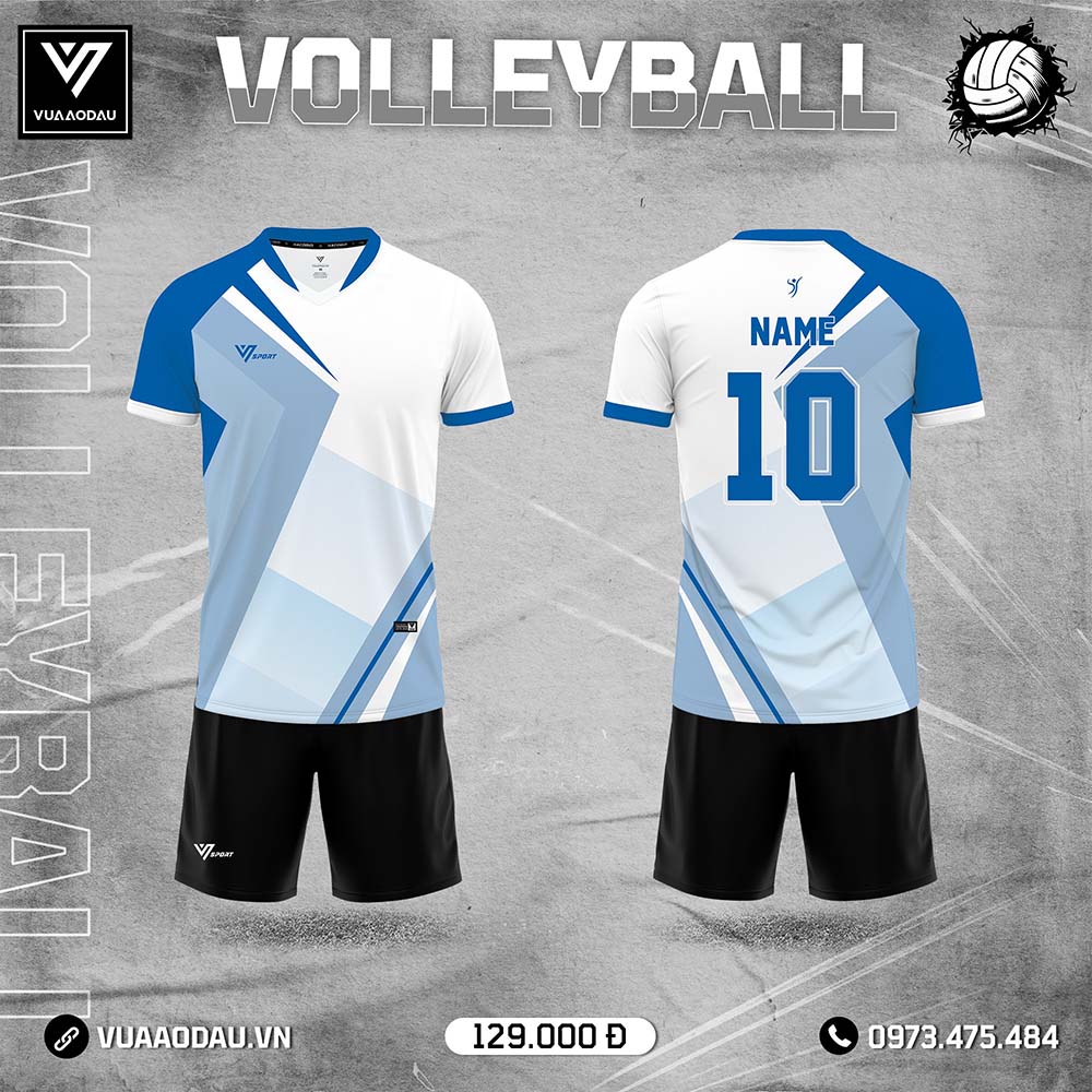 Áo Bóng Chuyền Nam Trắng Xanh Lam – Mạnh Mẽ & Năng Động