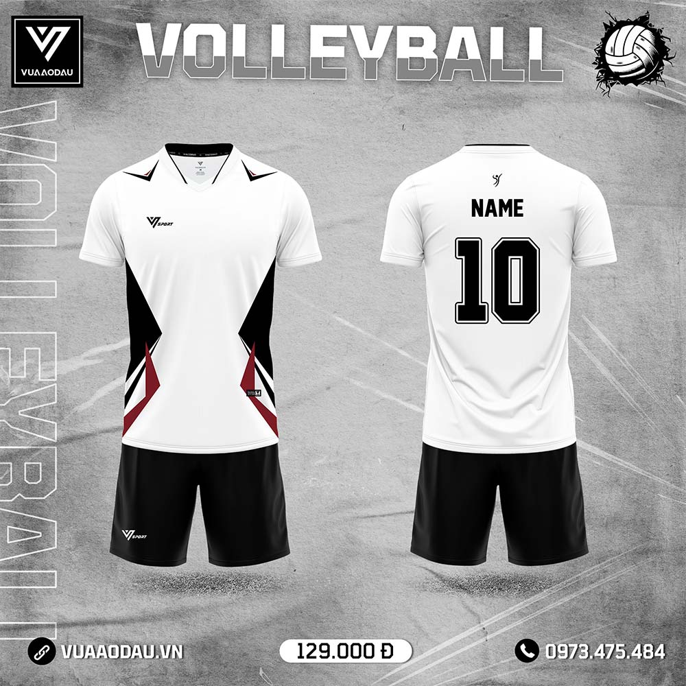 Thiết kế thể thao hiện đại với tông màu trắng chủ đạo, phối đen và đỏ đô mạnh mẽ – lựa chọn lý tưởng cho các vận động viên đam mê bóng chuyền chuyên nghiệp.
