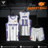 Form áo theo tiêu chuẩn thi đấu chuyên nghiệp, thiết kế không tay vừa vặn giúp tăng độ linh hoạt khi xử lý bóng và di chuyển. Quần bóng rổ dài vừa ngang gối, được cắt may khéo léo cho cảm giác thoải mái nhưng vẫn giữ được phong thái chỉn chu.