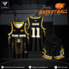 Bộ áo bóng rổ nổi bật với bảng màu trắng hiện đại, sạch sẽ kết hợp cùng sắc xanh dương đậm đầy nam tính. Hai bên thân áo và viền quần nhấn nhá với sắc vàng tươi trẻ, năng động — truyền tải thông điệp chiến đấu đầy quyết tâm, khích lệ tinh thần đồng đội và gắn kết trên sân đấu.