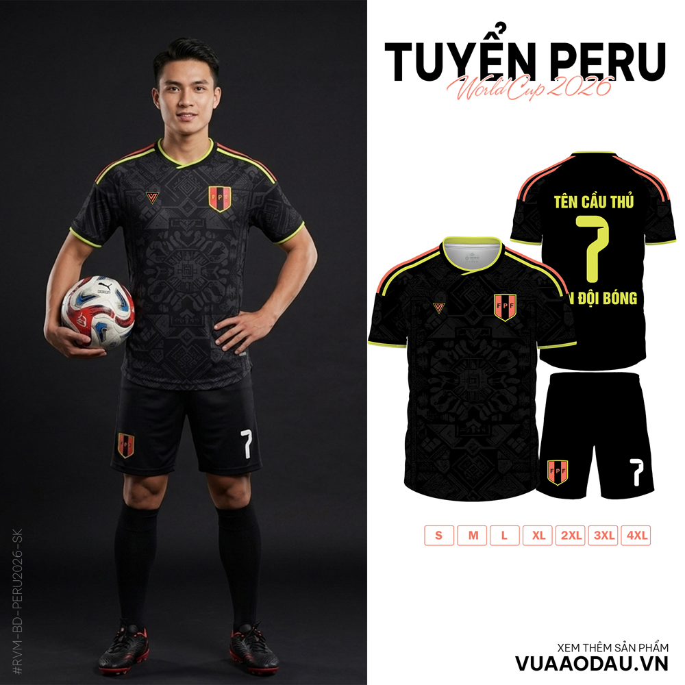 Hãy trở thành tâm điểm sân cỏ cùng áo đội tuyển Peru World Cup 2026 phối đen vàng. Đặt hàng trực tiếp tại vuaaodau.vn để nhận ngay ưu đãi và dịch vụ cá nhân hóa tuyệt vời!