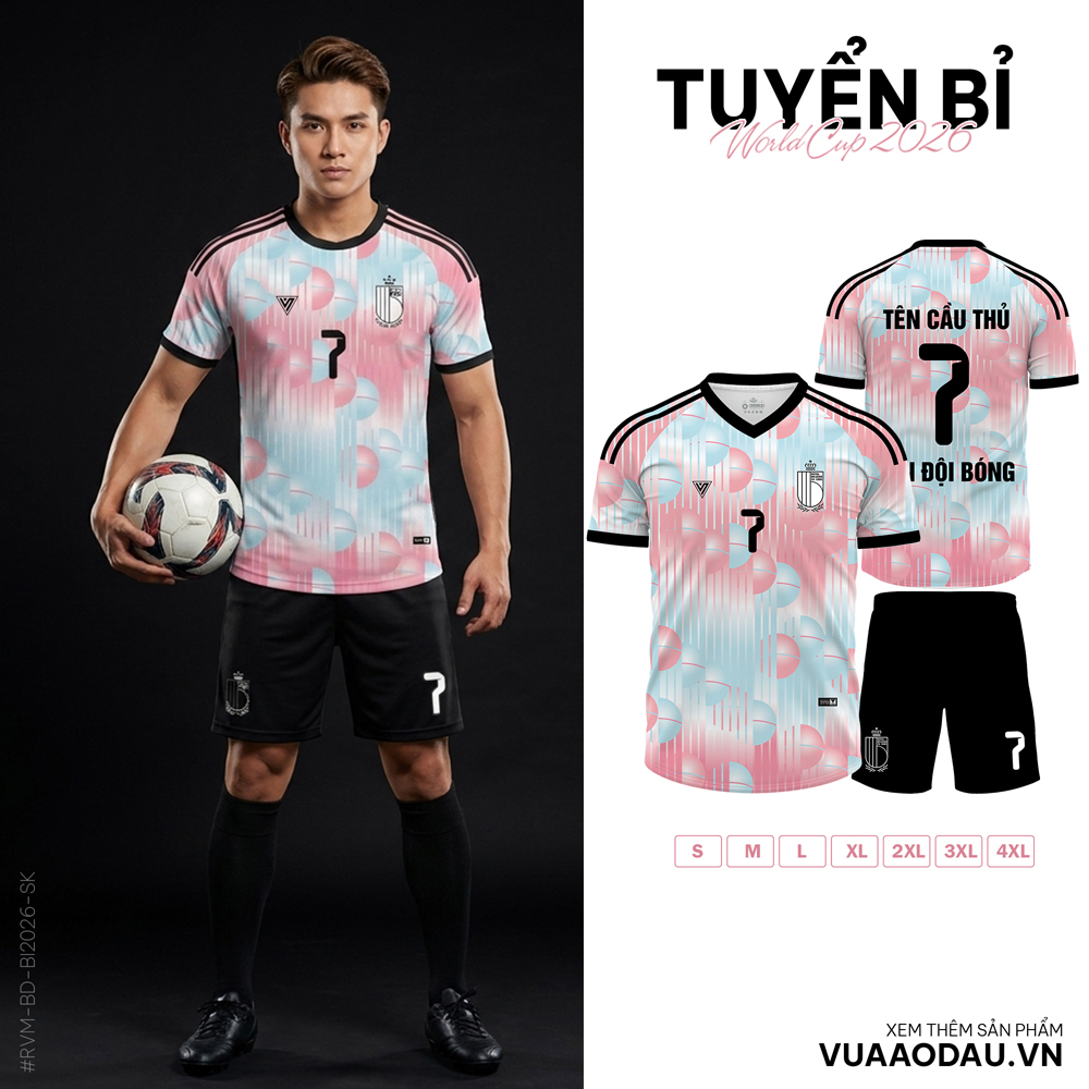 Áo đấu phiên bản World Cup 2026 nổi bật với gam màu xanh nhạt – hồng nhạt trẻ trung, thiết kế hiện đại và chất liệu co giãn bốn chiều, mang lại cảm giác thoải mái tối đa cho người mặc!