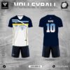 Đồng phục bóng chuyền trắng phối xanh dương – Nam tính và chuyên nghiệp