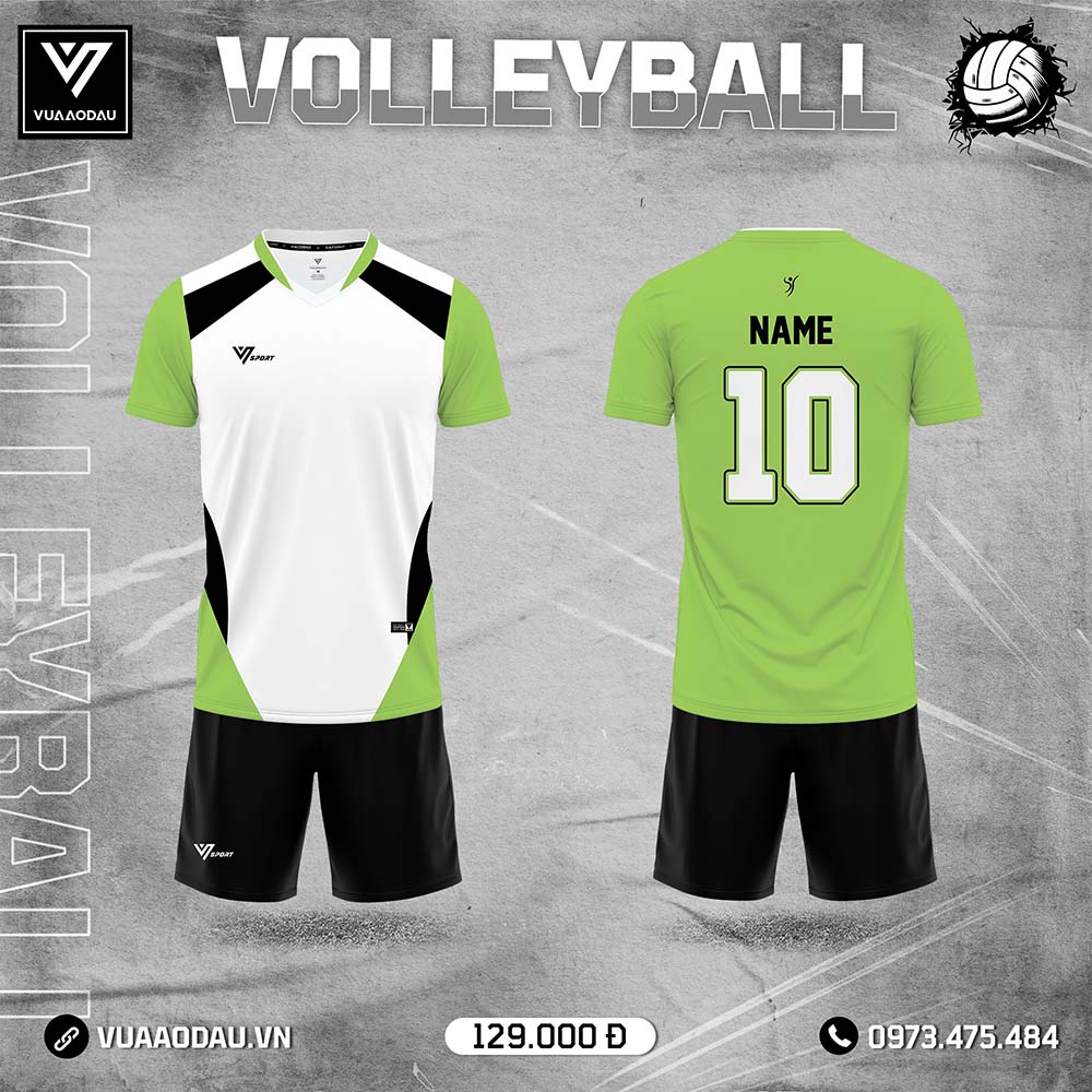 Đồng phục bóng chuyền trắng xanh lá mạ đen – Thiết kế thể thao hiện đại