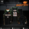 Sức mạnh – Cá tính – Bền bỉ: Bộ đồng phục bóng rổ với sắc xanh lá đậm, họa tiết rừng núi độc đáo, mang đến diện mạo nổi bật và đậm chất thể thao cho mọi đội bóng!