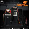Bộ đồng phục bóng rổ nổi bật với tông màu đen chủ đạo đầy quyền lực và bí ẩn, phối hợp cùng chi tiết hồng pastel tinh tế – tạo sự cân bằng hoàn hảo giữa sức mạnh và phong cách trẻ trung. Chữ in màu trắng sắc nét nằm trên nền đen giúp tên đội, số áo và tên cá nhân dễ nhìn, đặc biệt khi thi đấu dưới ánh đèn sân đấu.