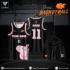Một thiết kế đồng phục bóng rổ đầy cá tính mang sắc hồng ngọt ngào, kết hợp hình ảnh Peppa Pig tinh nghịch – lựa chọn hoàn hảo cho những đội bóng trẻ trung và nổi bật.