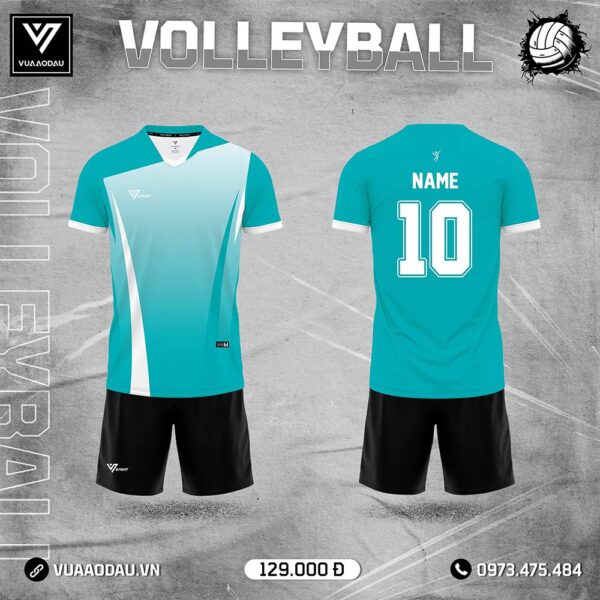 Áo bóng chuyền xanh ngọc lam với thiết kế chuyển sắc tươi mới, chất liệu vải thể thao cao cấp, mang lại cảm giác thoải mái, mát mẻ và chuyên nghiệp cho vận động viên trong mọi trận đấu.