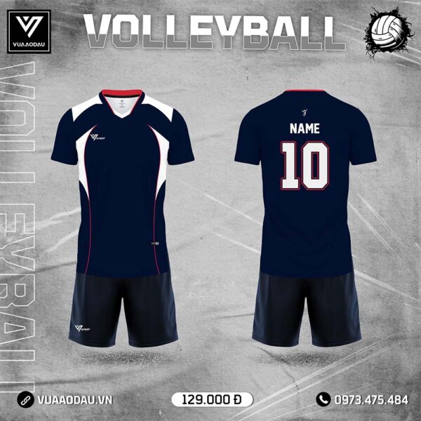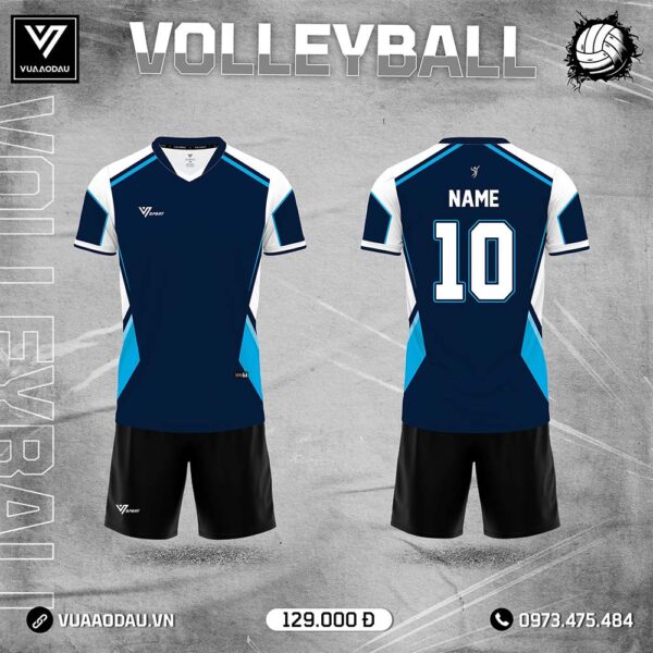 Bộ quần áo bóng chuyền xanh navy phối trắng-xanh dương từ Vua Áo Đấu kết hợp thiết kế thể thao năng động và chất liệu thoáng mát cao cấp, phù hợp cả thi đấu và tập luyện cường độ cao.