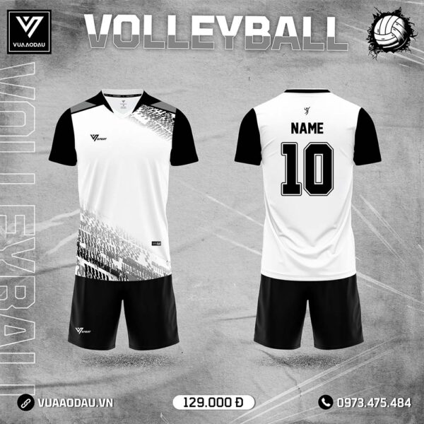Đồng phục bóng chuyền đen trắng – Thiết kế pixel hiện đại
